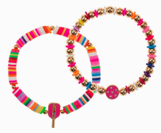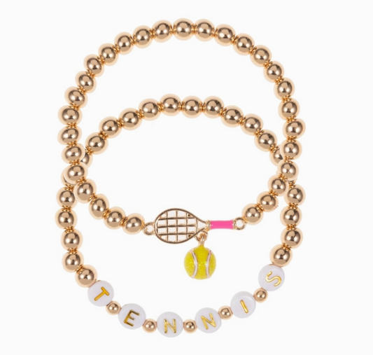 Pink Gameday Tennis Shape Enamel Stretch Bracelet (Set of 2)