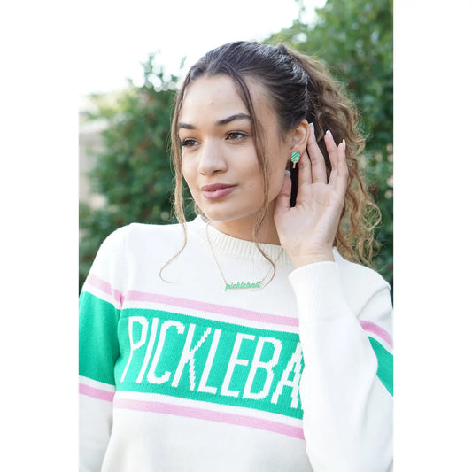 Ellie Pickleball Enamel Stud Earrings in Green & Blue