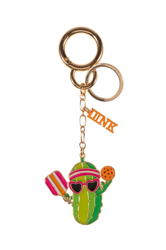 Pink Sports Pickleball Enamel Bag Charm and Keychain