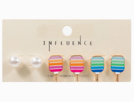 Pickleball Enamel Print Post Earrings (Set of 3)