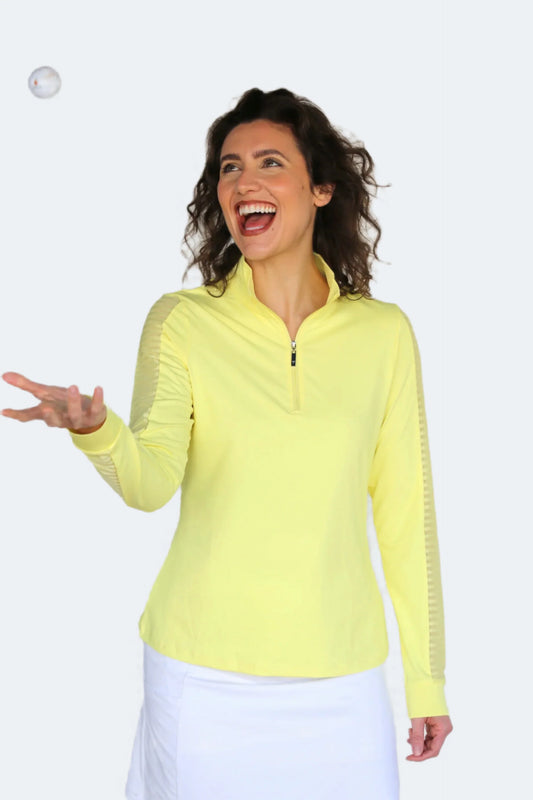 Ladder Design / Sheer Long Sleeve Golf Shirt - Sky Blue