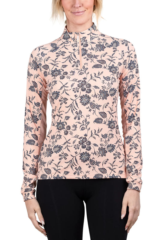 1/4 Zip Long Sleeve - Jacobean Peach Floral