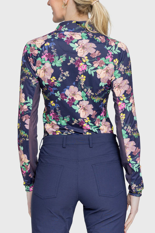 1/4 Zip Long Sleeve Shirt - Navy Lush Garden