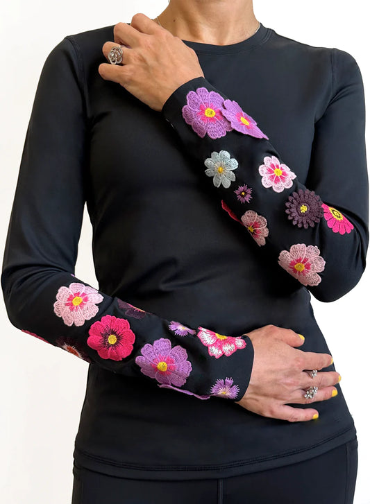 1/4 Zip Long Sleeve Raglan Shirt - Black & White Climbing Vine