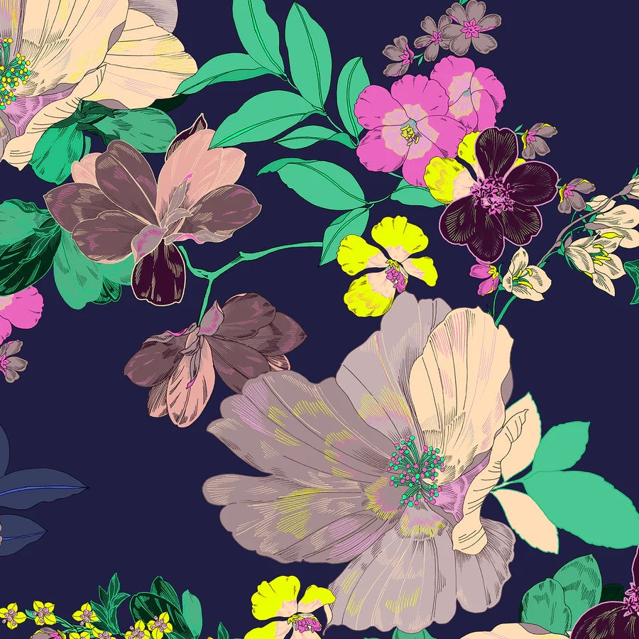 1/4 Zip Long Sleeve Shirt - Navy Lush Garden