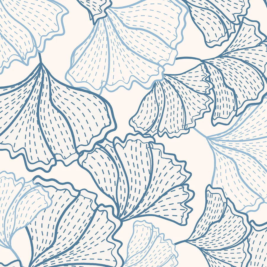 Long Sleeve 1/4 Zip Shirt - Chambray Blue Poppies