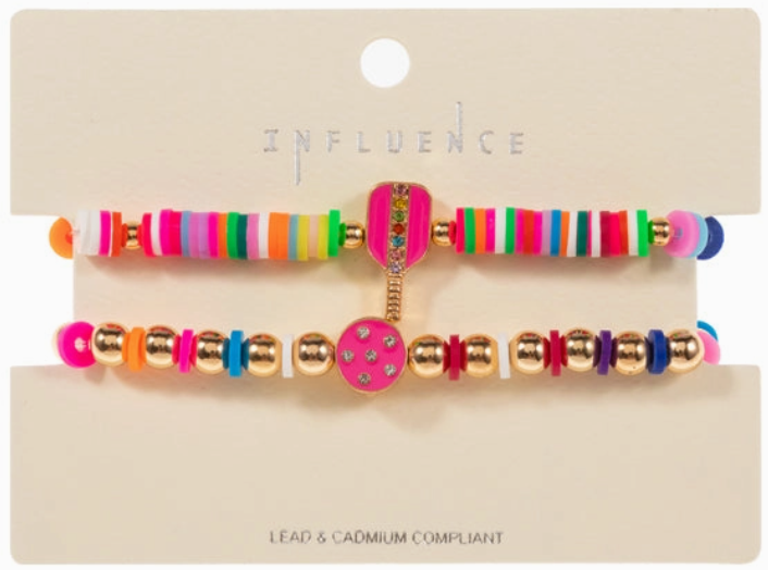Hot Pink Sports Pickleball Enamel Rubber Beads Stretch Bracelet