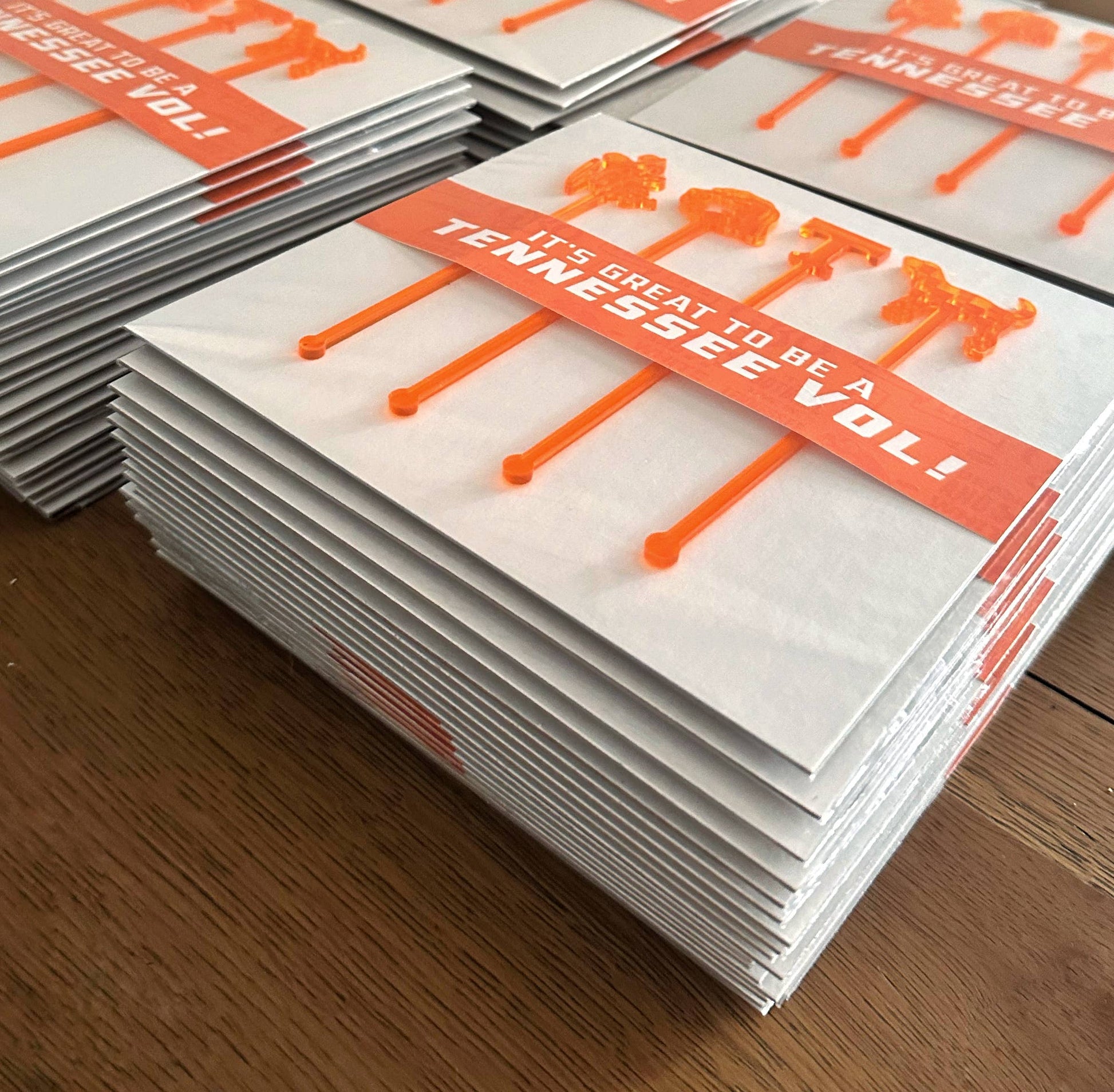 Laser cut from 1/8β thick acrylic, each stir stick is 6 1/4β tall from bottom to top. Our stir sticks can be reused over and over again. We also design, cut, and package every single set ourselves.