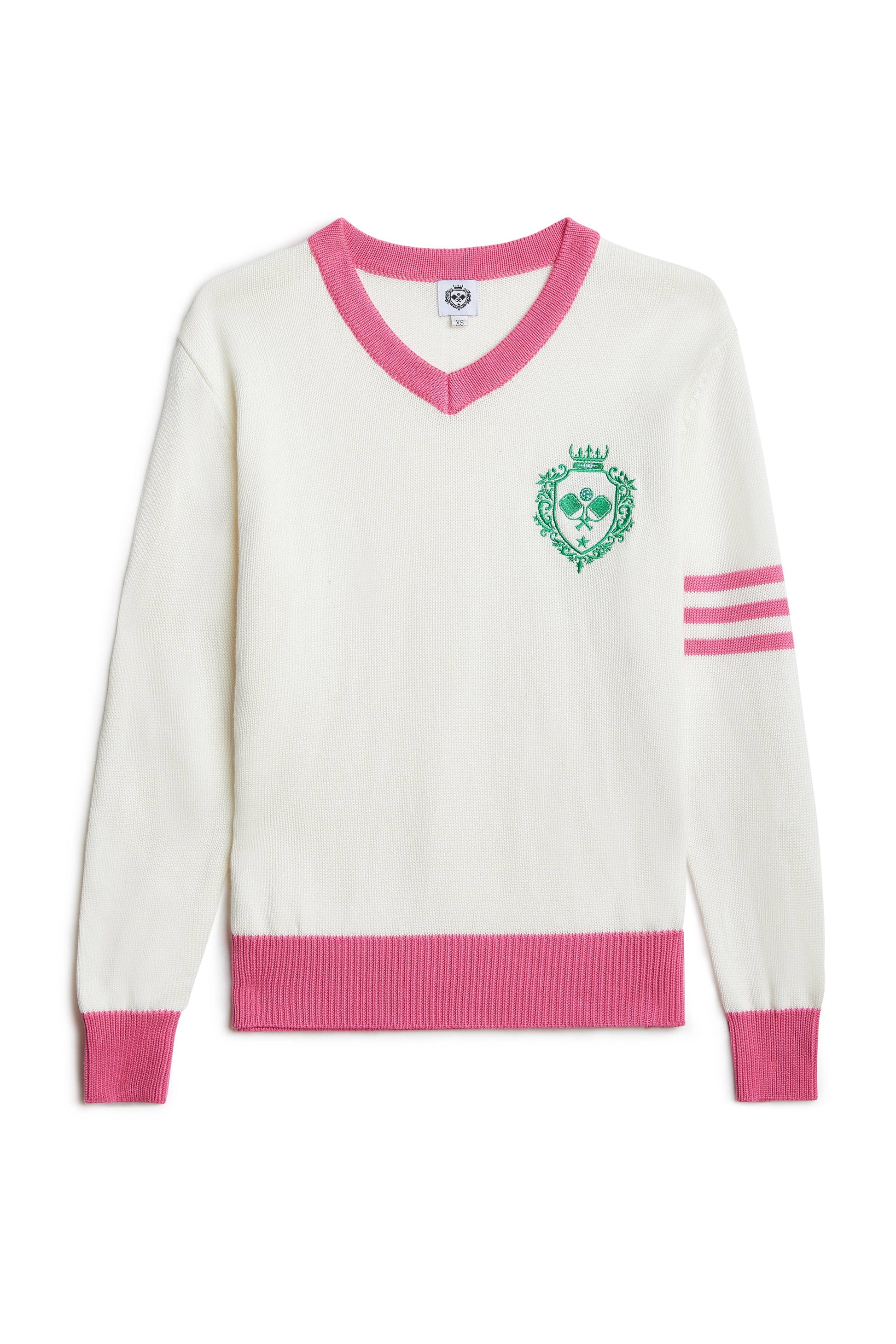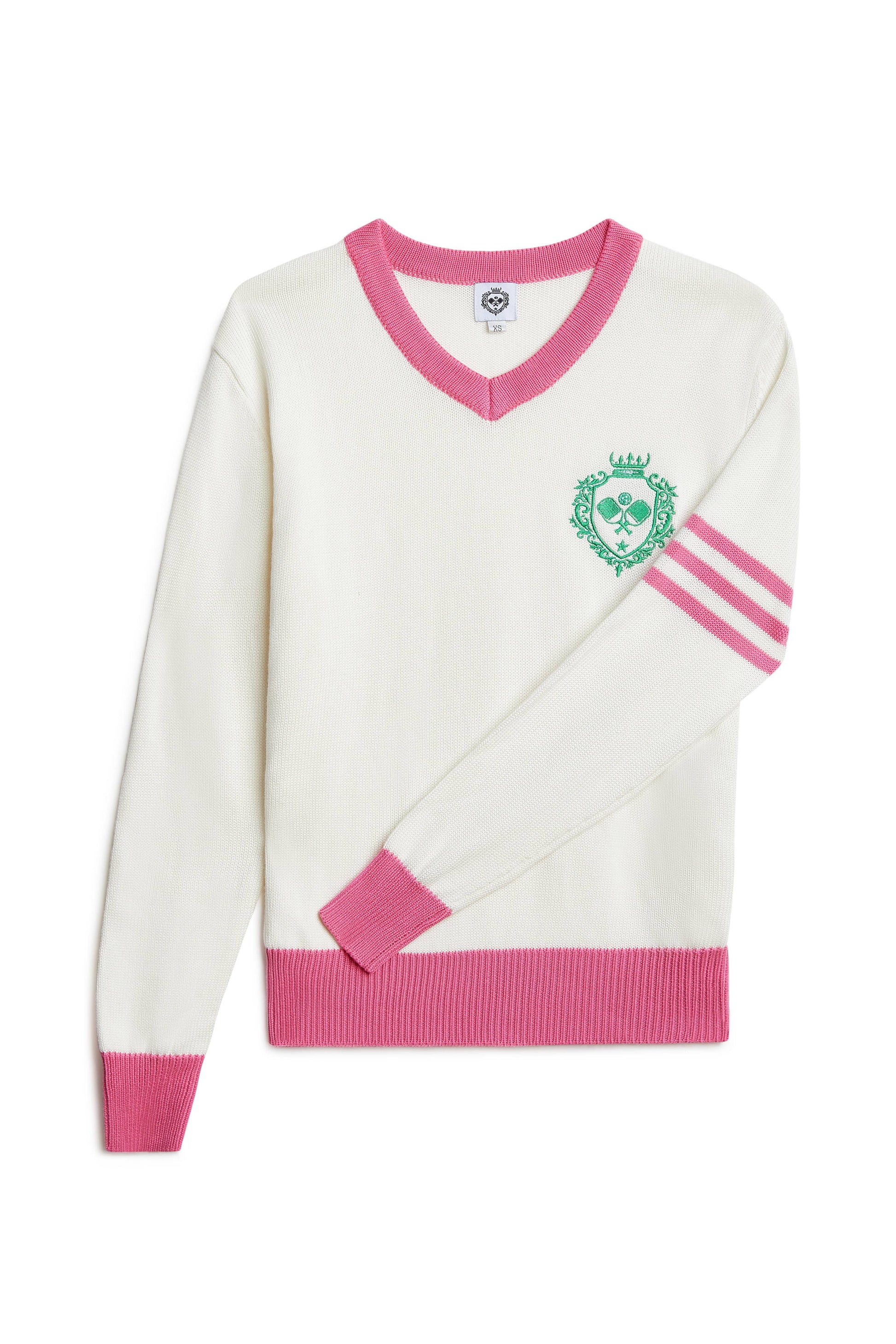 Pickleball Prep - Pink V-Neck Soft Sweater: M